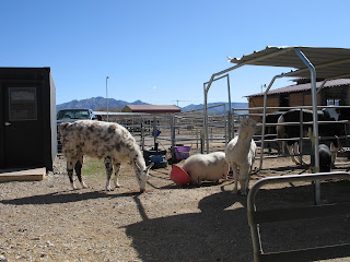 Since hubby and I got to Shiloh early (being the early birds that we are...), we sat and watched the morning feeding. There are other rescues at Shiloh besides the horses...pigs, a llama, an alpaca, various dogs, kittens...there might even be more that we didn't see! It is such a busy place! Here are some scenes from Saturday's morning. I'm late for school (I overslept AGAIN!), but I'll post more Shiloh pics tomorrow! Today is our last day of testing...YEAH! You CANNOT believe how stressful state testing is. The kids are tired, worn out, and cranky, and so are the teachers!!!